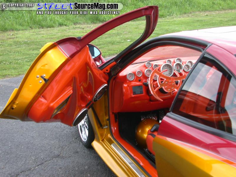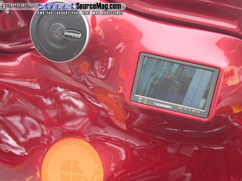 Keeping true to the custom feel, a Sony VAIO laptop computer with custom engine diagnostics and on the fly tuning would be wired up. The trunk lid would receive the next wave of countless hours of fiberglass treatment with two 7-inch Blaupunkt monitors molded in.