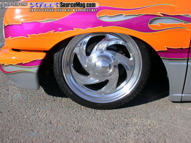 Next the rear frame rails would be C-notched and the leaf springs would be ditched for a chrome 4-link assembly. The brake assembly would consist of chrome lines, chrome rear drums and disks upfront. Now with most everything tucked and relocated they were ready to perform the 2-½ inch body drop. With the fenders now engulfing the 17 Billet Specialties wheels rapped in 205/40 Sumotumo.