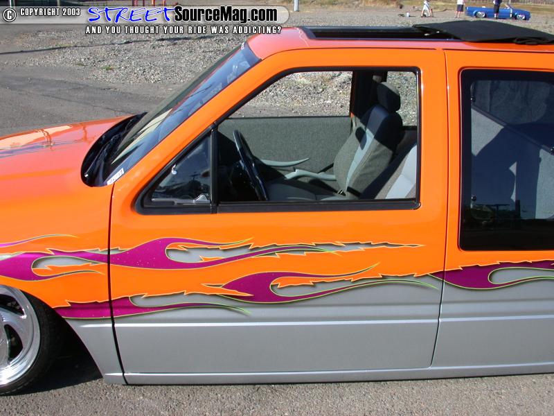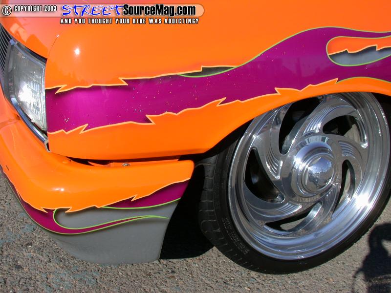 Moving to the rear, the door handles would be shaved along with the gas filler door which would be relocated into the bed. The antenna would then be removed along with all of the emblems. Once to the rear, a Sir Michaels roll pan would be installed along with removing the taillights in favor of LED's for taillights. Finishing things off, Radar would have a sliding ragtop installed to let in the light on those hot summer days.