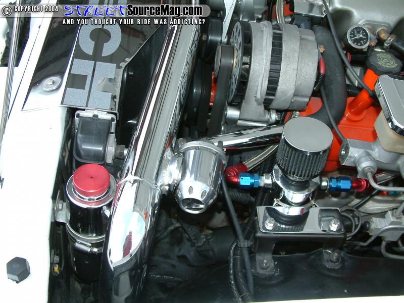 An Apexi/HKS/Fast computer system turbo timer and other electronic components would be installed to ensure engine top-notch performance, a set of 83lb injectors would be installed to ensure proper fuel to the engine. With the new flow of fuel, exhaust would be in issue. To balance things out Alvin would have a 3-inch exhaust with Gibson muffler custom fit from the Gibson back. A 250 amp Ohio Generator alternator with GM Performance Distributor, coil and wires would then all be installed to keep current flowing through out. To get the power to the wheels Alvin would have a custom 700R4 Transmission by McCoy Motorsports of Pikeville, KY installed along with a modified stock shaft by Advance Driveline of Orlando, FL. A Limited slip with 3:42:1 would be installed to get both wheels spinning. Needing the engine to shine on the show scene Alvin would have the engine block stripped and painted Chevy orange to match the color on the valve covers while all of the water cooler pipes would be chromed along with all of the brackets through out.