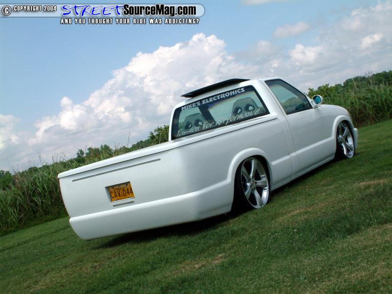 Continuing with the shaved items Alvin would be rid of the gas filler door, taillights, hood squirters, antenna and 3rd brake light. While the taillights are found replaced by a set of LED’s, the headlights would also be replaced by a set of ’97 Blazer headlights. To finish off the exterior modifications Alvin would have a Trader bed cover and wiper cowl cover installed along with a Power sunroof for those sunny Island days.