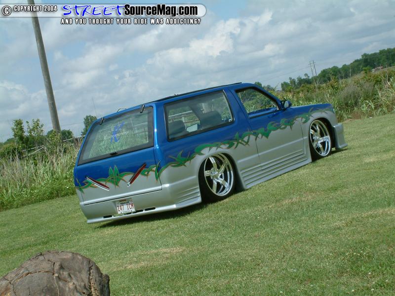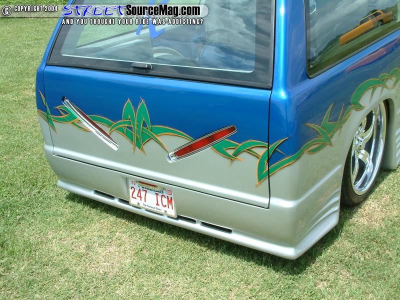 The front bumper would be fiberglassed along with a fiberglass roll pan molded to the Blazer body. Moving on with the modifications the door handles would be shaved along with the gas filler door, which would be relocated into the factory jack location. The headlights would be recessed 2” and the taillights would be shaved and replaced with a set of ’91 Cadillac lights.