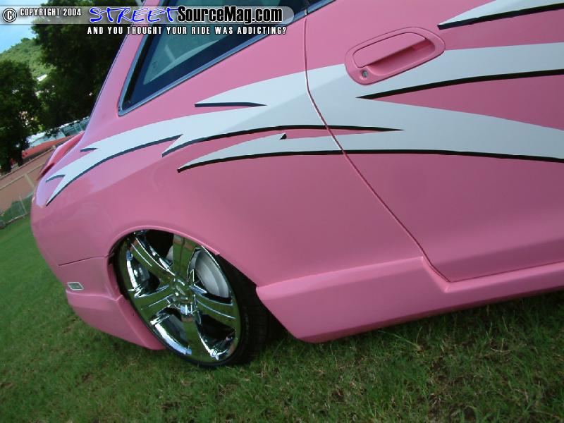 With the bodywork complete Shamila would then turn to Nataniel Francis of St. Croix to spray the pink basecoat through out the Accord. Not yet complete Joey from Epok Graphics would then lay down a set of white and black graphics to help break things up.
