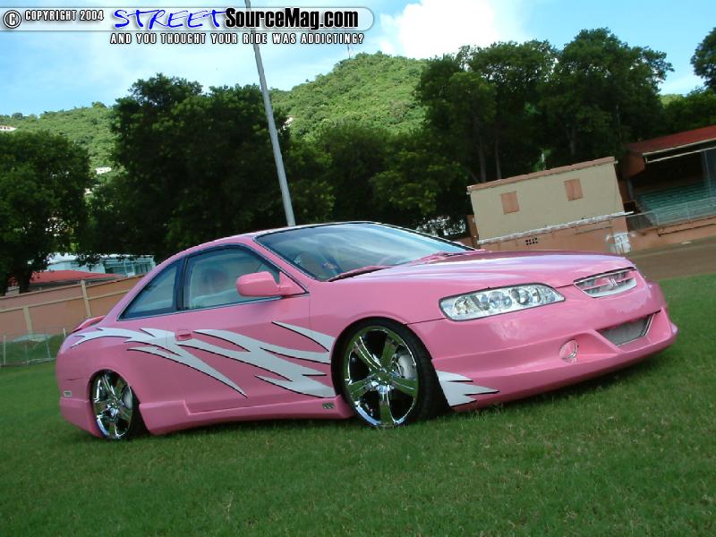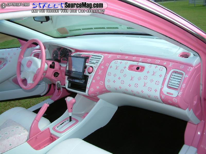 Moving to the inside of the Accord you’ll find an array of Louis Vuitton pink blossom material. The dash with some pieces wrapped and some painted would be the beginning of the ventures. Next the doors and headliner would be wrapped along with other interior panels.