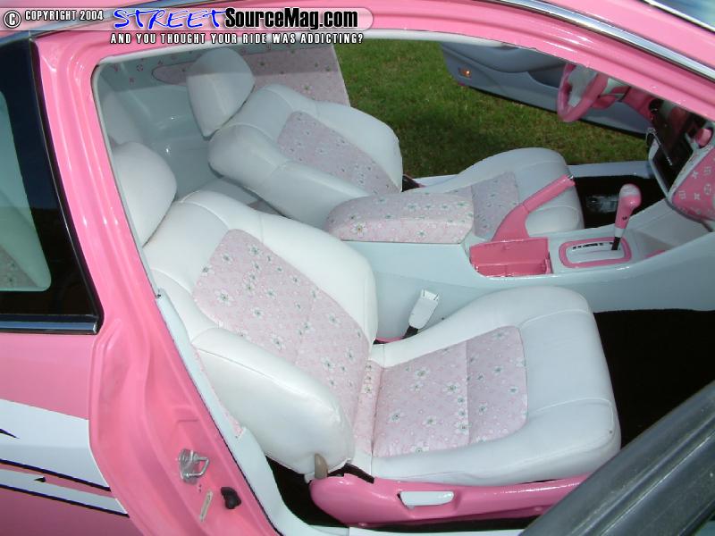 The seats would then be stitched to help tie things together. Making sure no item was left stock other items such as the steering wheel, rear view mirror and control panels where painted to help keep the custom flow.