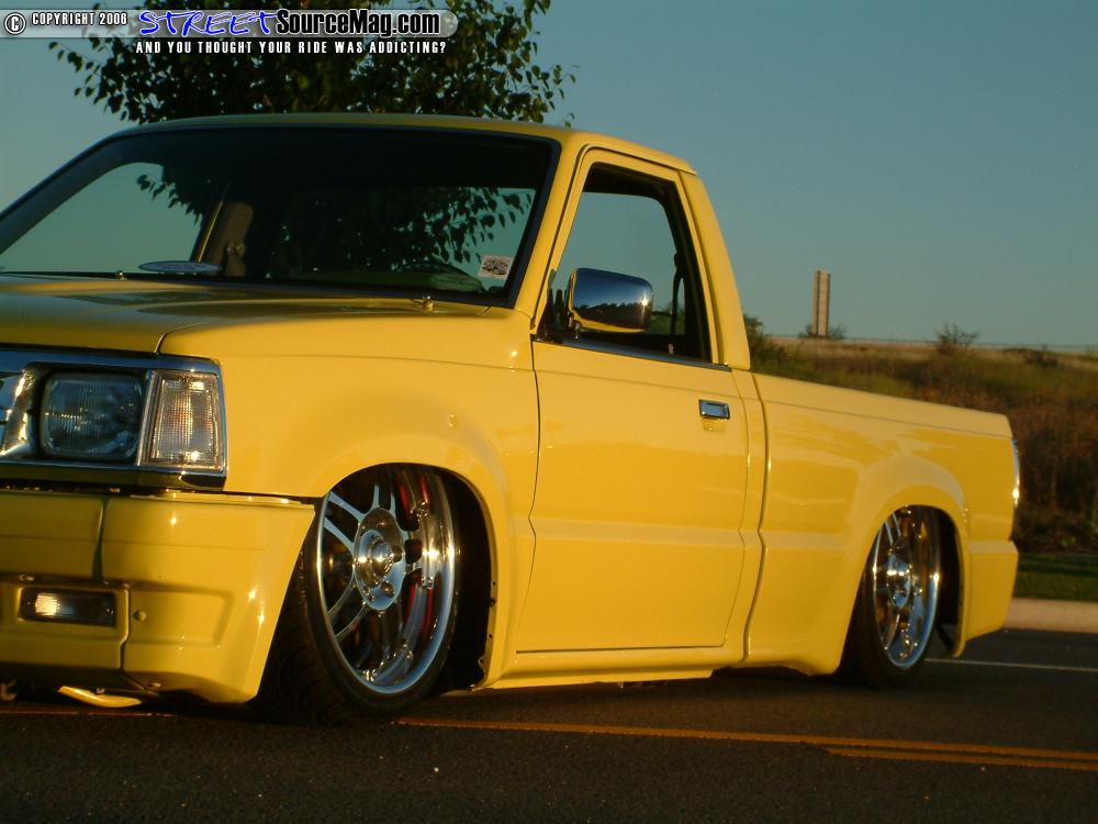 The first thing needing done would be the new addition of a Mazda 4x4 hood, fenders and bed. Next Kenny would take the stock bumper and equip it with a frenched in plate. The gas filler door would then be shaved and moved behind tailgate.