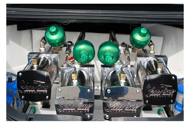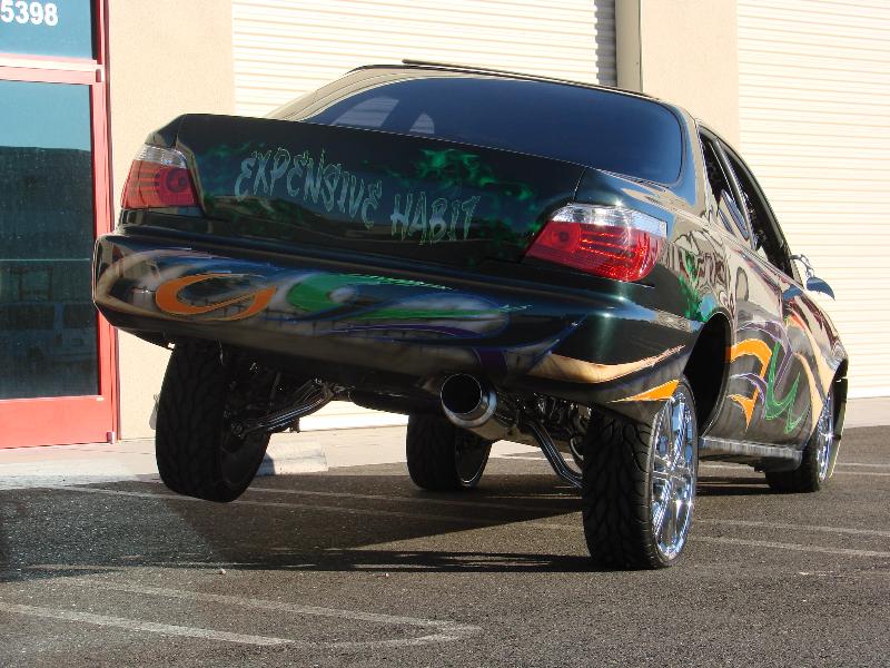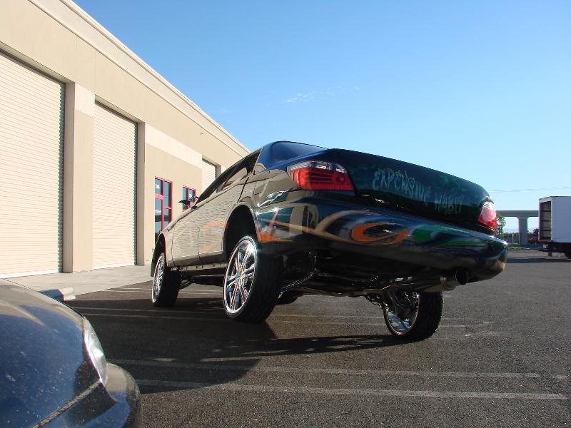 4 pump showtime competition setup, with 4 parker accumalators, with all parker fittings, and 4 blue top optima batteries, 8 inch in the front, and 12 inchers in back, fully chromed suspension, rides like a caddy. lays on the ground, and gets up like a jeep. hits 3 wheel front or back. all done by me. unibody cut up to lay low on 20s with custom made brackets, and fully chromed suspension. removed the stabilizier bars. so it would lean a mean 3 . 6/29/08 in the process of redoing the setup. going down to 2 pump setup, and redoing the trunk, should be done within a week or so, will postpics then