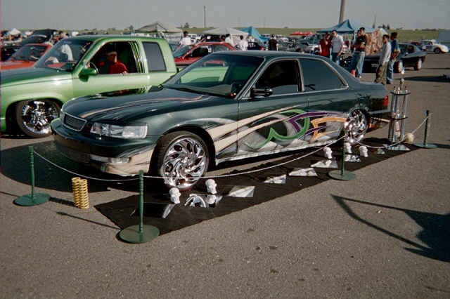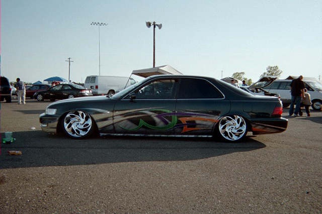 SHAVED HANDLES, SHAVED ,MOLDINGS, CUSTOM MERCEDES BENZ STYLE MIRRORS GRAFTED ON, CUSTOM MADE BILLET GRILLS, CUSTOM MADE FRONT AND BACK EYELIDS, PAINTED JUNIPER GREEN WITH HOUSE OF KOLOR GRAPHICS, AND TOPPED OF WITH 3 GALLONS OF CLEAR. 6/16/04 JUST DID THE LAMBORGHINI DOORS AND NO IT WAS NOT A BOLT ON KIT, KIT WAS MADE FROM SCRATCH FOR THIS CAR, AND DONE WITH HELP FROM JAIME AT PHAT RYDEZ, MODESTO, CA