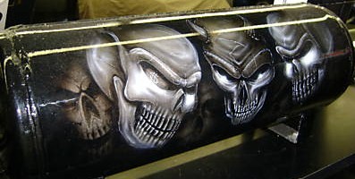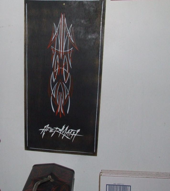 flat orange paint... pinstripping..---- a few other things nothing fancy just bag it drive it and whatever
