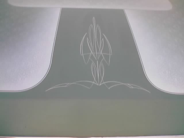 metallic green stock, except for the roof, it has an overlapping, panel fade, lace job with some pinstriping done by my roomate josh.
