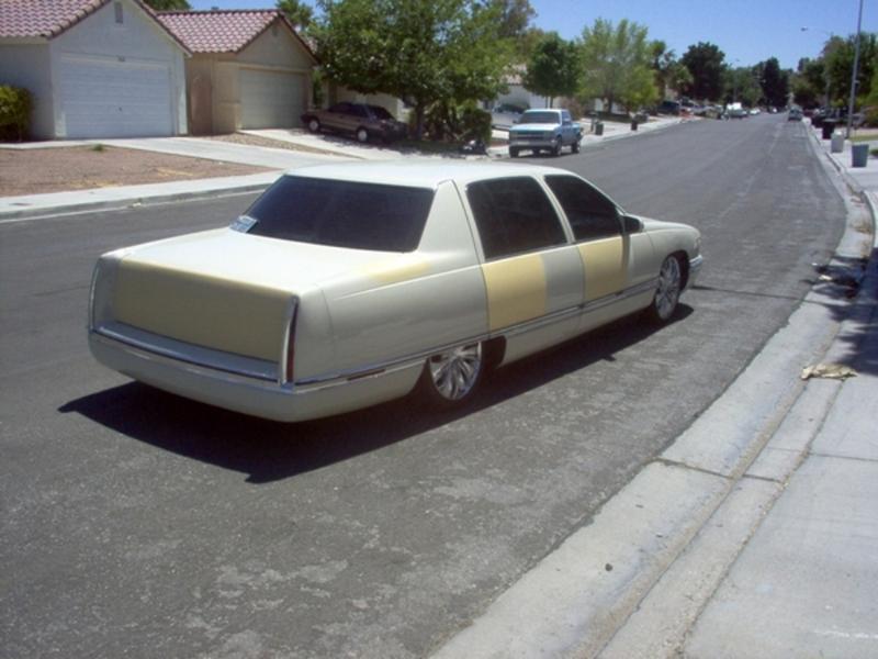 Update: shaved front and rear door handles, hood emblem, antenna, rear liscence plate holder, gas door, billet grille from Chassis Tech, 3% limo tint, a little pinstriping.