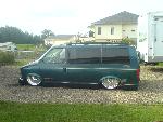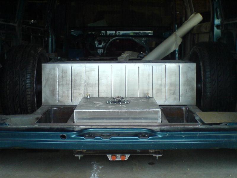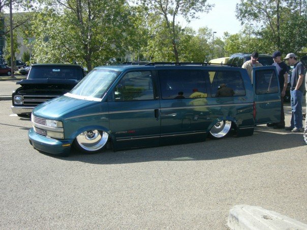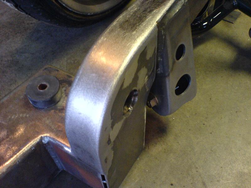 Fabbed front frame, wishbone 4-link out back, slam bags.