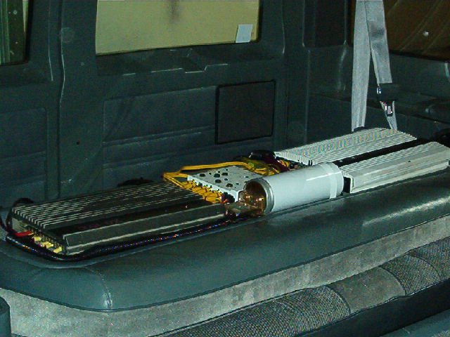 GONE!!!!!Pioneer cd player and eq, two sets of Soundstorm 6-1/2" mids in the doors plus tweets, 5x7" soundstorms in the dash, a pair of reactor 8" subs in rear panels, 2 10" Infinity reference subs, slot port box,rear tweeters and 4" polks in back panel, Alpine 6 channel for the mids and an Audio Gods amp for the subs, plus a Lightning Audio 1.5 farid cap.