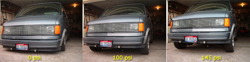 Full FBSS Air Suspension :: Super-Pivot Triangulated 4-Link :: Clear 10-Switch Box :: 2-Ply RS-72 Slam Specialties AirBags :: York 210 On-Board Compressor :: Viair 380c Compressor :: Four 5 Gallon Stainless Air Tanks :: 1/2" SMC Electric Valves :: Dakota Digital Gauges :: 2" Belltech Drop Spindles
