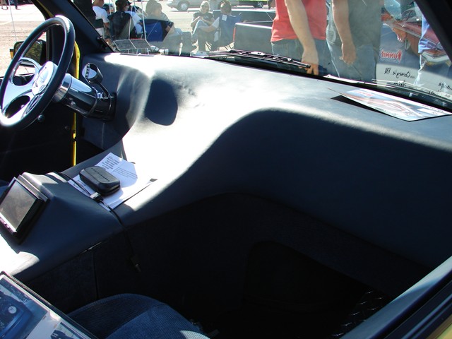 Lots of fiberglass work covered in vinyl. Guages in drivers side door.