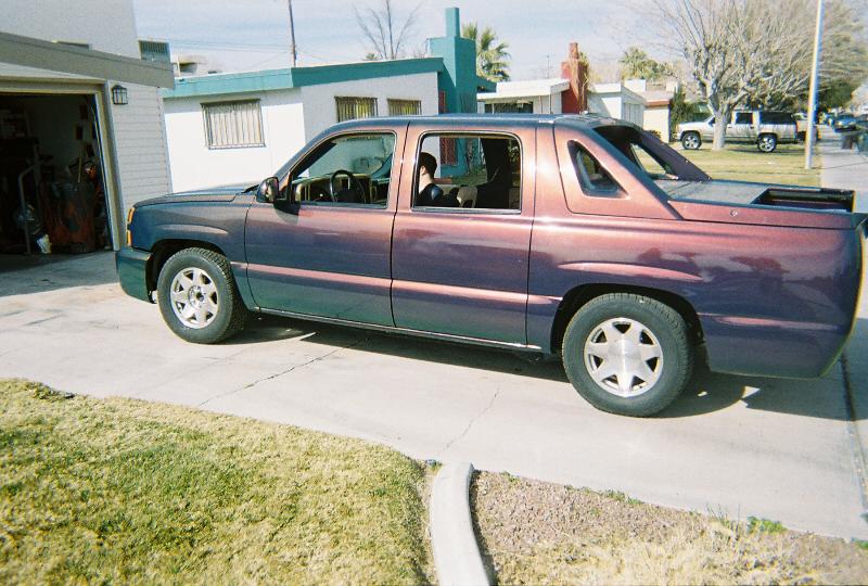 shaved everything handles smooth tail gate custom built and molded roll pan shaved tail lights shaved gas door led's in roll pan and escalde 3rd brake light and gas door is in side compatment smoothed out plasics and ss front bumper and grill blue base with a maple matrix pearl flops like 8 colors