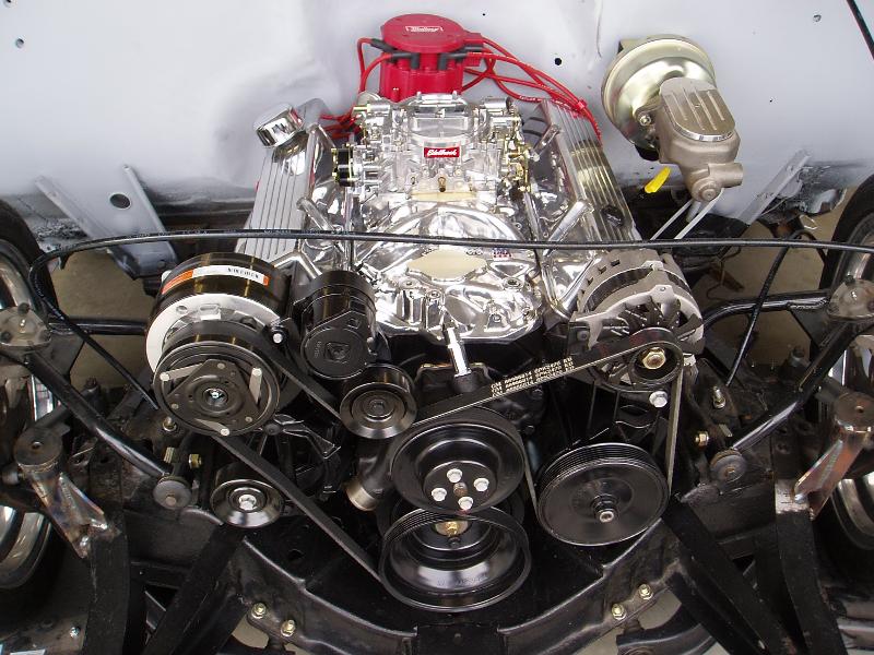 Chevrolet 350ci with an Edelbrock performer carb/intake /cam kit& 700 R4 transmission. Sanderson ceramic coated headers