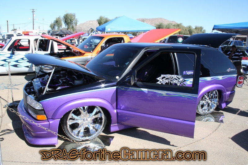 4.3 Liter, intake, Polished alternator, powdercoated pulleys, loom, painted with graphics, billet, some chrome, and neon. Kinetic 1800, Dyna Max Stainless exhaust