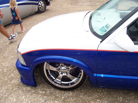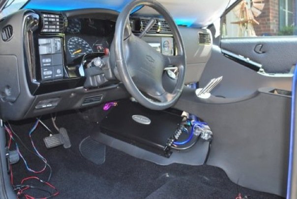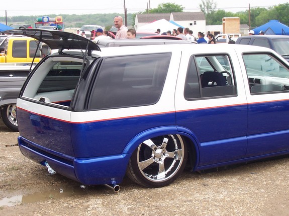 Slams 7" front, 6" rear, 2 link in the rear w/ panhard, custom built gas tank under cargo area, BYC upper and lower arms up front, 7" dual diaphram booster, a/c box modified (to damn hot in TX to have no a/c!!)
