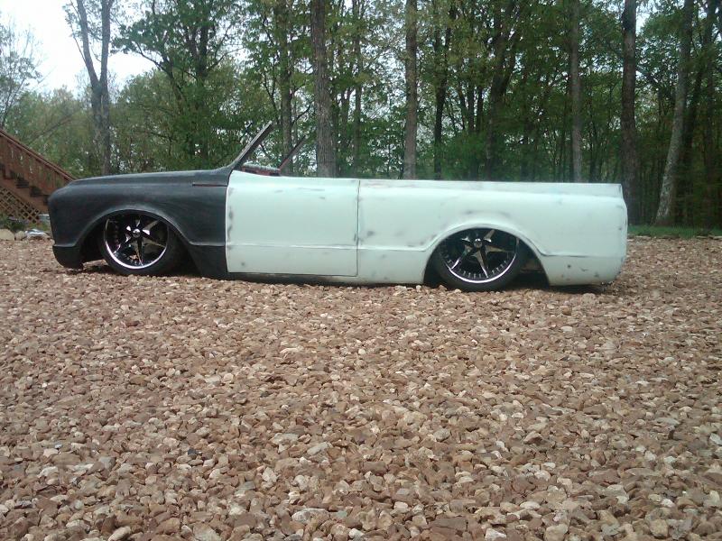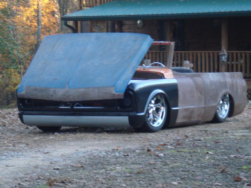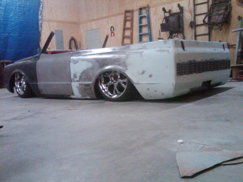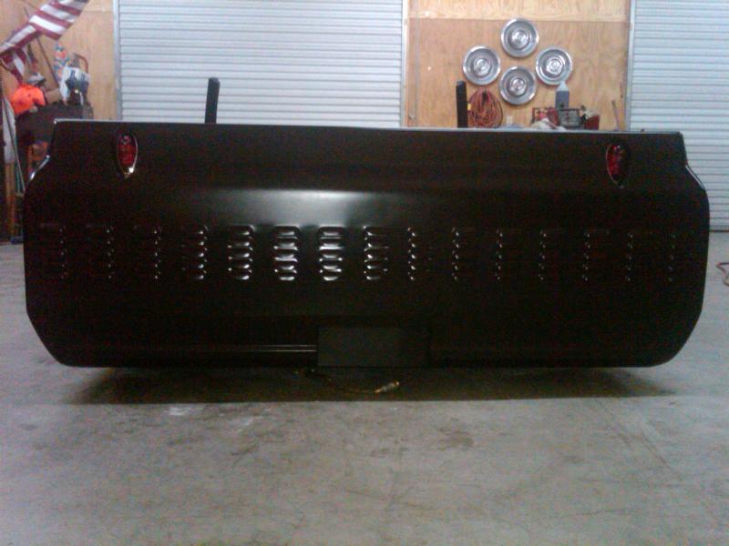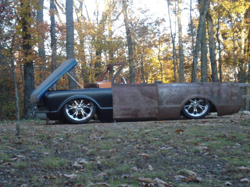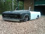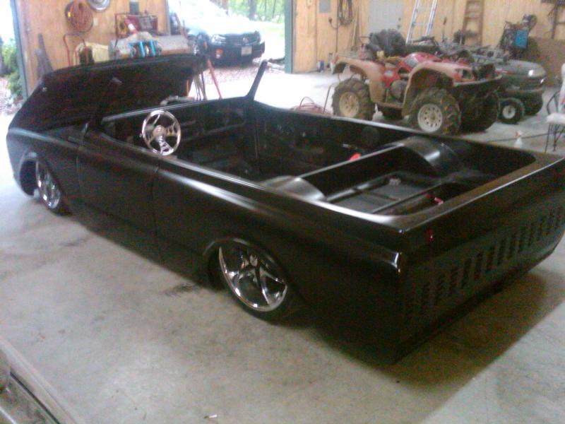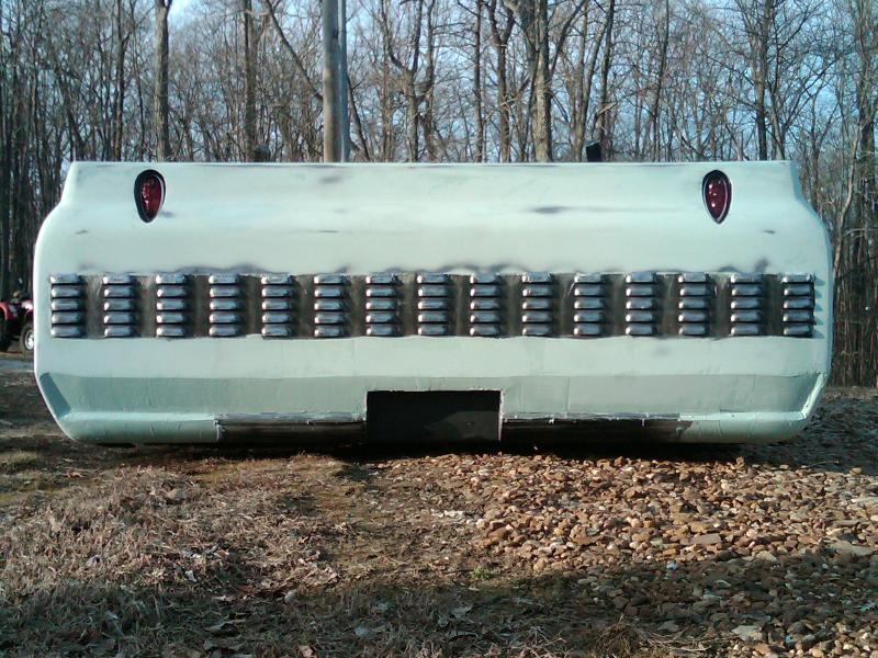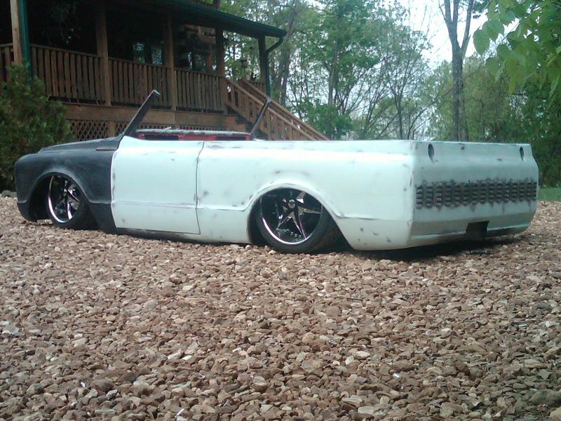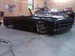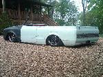 full time convertible, capped doors, 67 front clip, louvers on the rear, 39 ford tail lights, metal work galore...