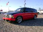 custom two tone red and blac with simulated brushed aluminum seperating the two and some flame detail on the rear.