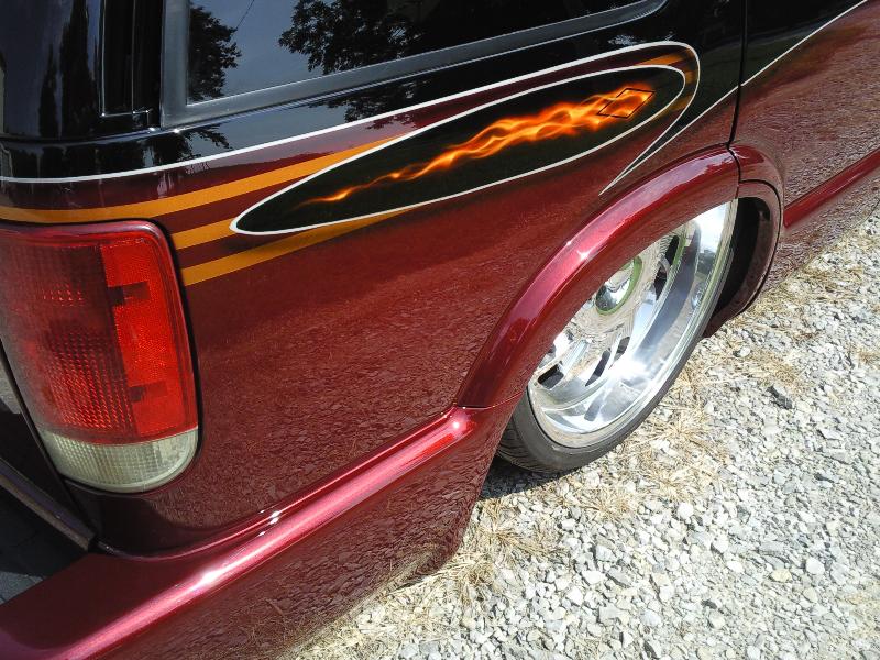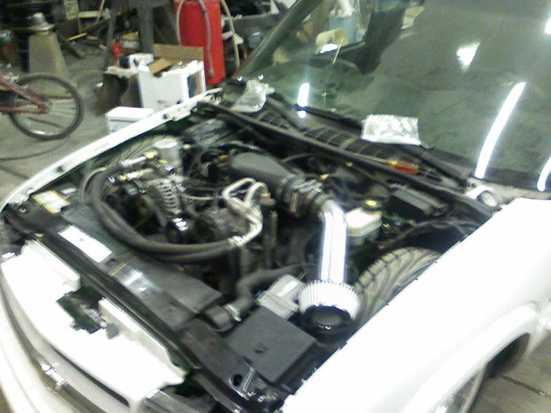 stock 4.3 with intake full magnaflow cats and muffler exiting in stock location.plus stock inside ht-a/c modified out side a/c works great
