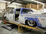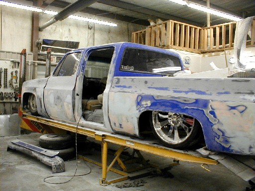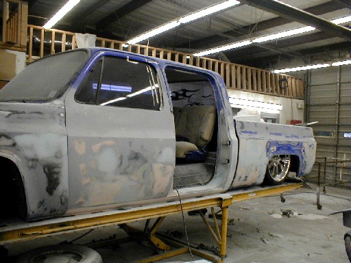 Crew cab on a 1/2 ton chassis, 6 ft bed. Shaved completely. Truck has now been completely painted by Kevin Cox and the crew at Custom Concepts in Oklahoma City.