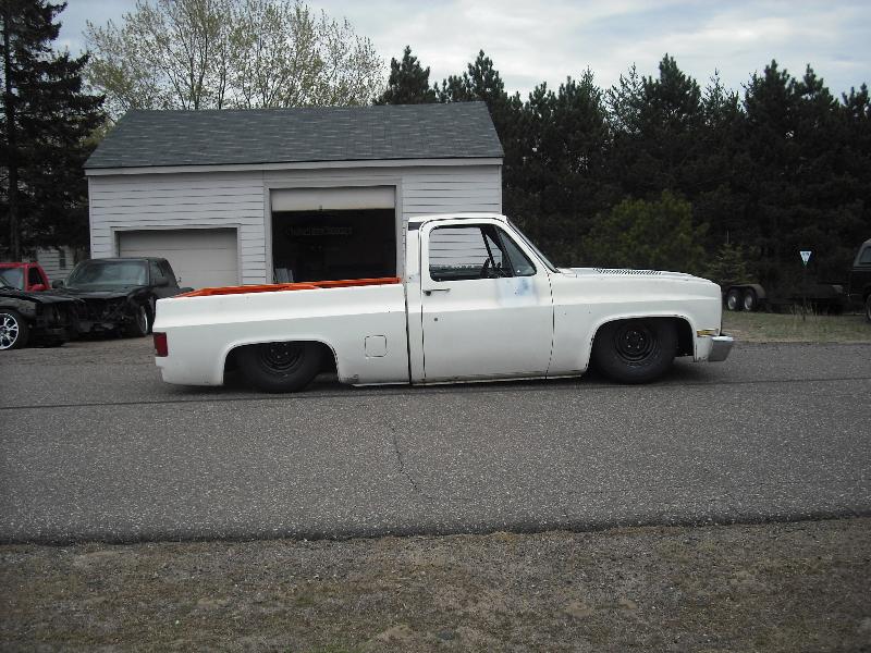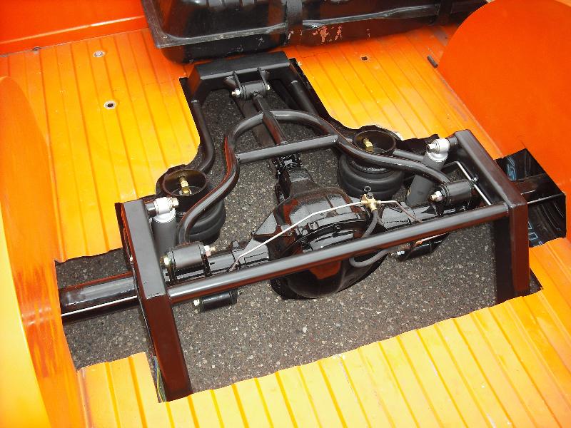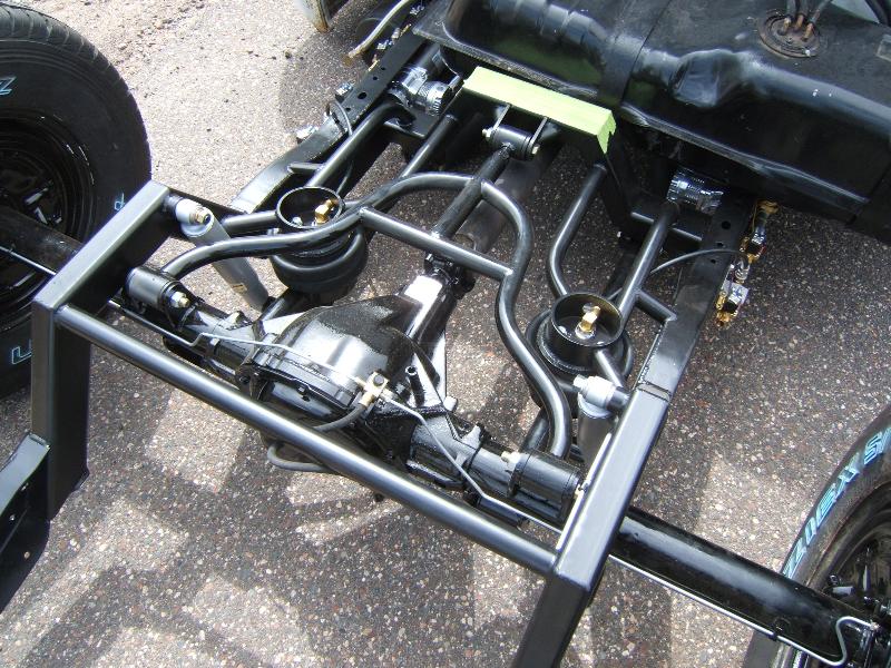 slam re 7's front and rear, 3/8" line 3/8" Asco valves, 7 switch, Viair 480 Comps, wishbone 3-link with bag on bar, Monster tubs, lays 22/24 combo