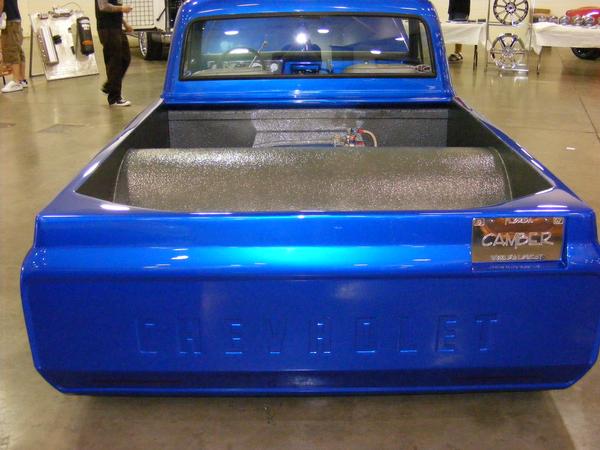 03/07/2009 fixed all body work and repainted House Of Kolor True Blue Pearl..... Shaved door and tailgate handles, cowl vent, gas hole, driprail, taillights, antenna, and front turn signals / frenched license plate box, molded tailgate,Hitech Led tail lights, tubbed rear fenderwells / radiused bed corners / color-matched Line-X