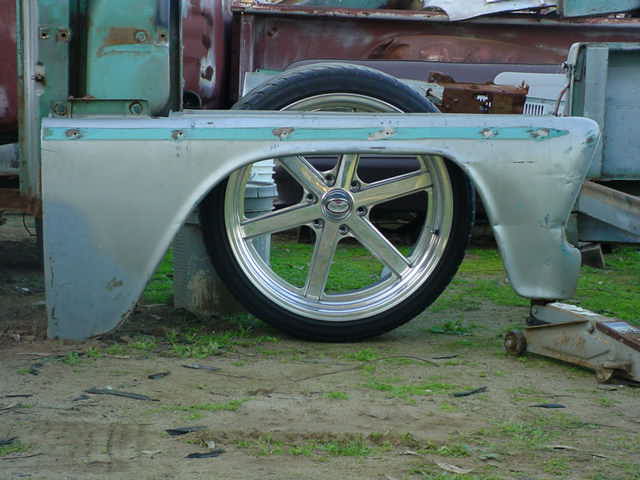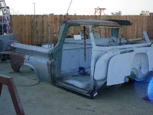 currently working on getting the top back together...the chop came out being about 2 1/2" and jus bought a new tailgate, filling in that piece...hope to order the fenders soon and continue on finishing up the bodywork...hope to get pics up soon