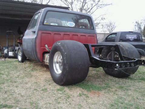 2" drop spindles, Rear notched with adjustable ladder bars with coilovers. 9" Ford with 4.56 gears. Rear disc brake conversion.