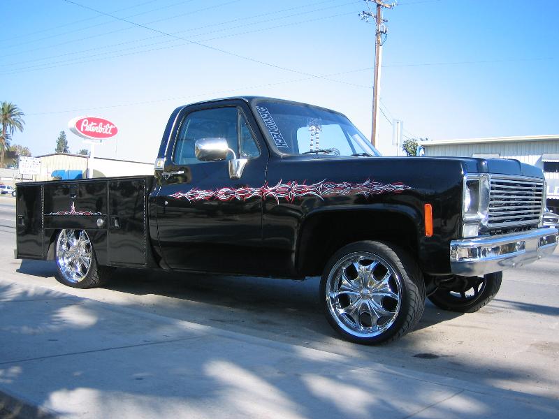 BLACK W/ A UTILITY BED!... I JUST RECENTLY HAD PINSTRIPING DONE BY COREY OD TRENDS CUSTOM PAINT IN BAKERSFIELD !