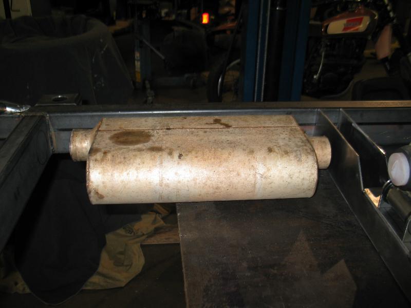 i used a Flowmaster muffler for mock up. its 4-inches tall which will fit inside the frame but will also drag on the ground.