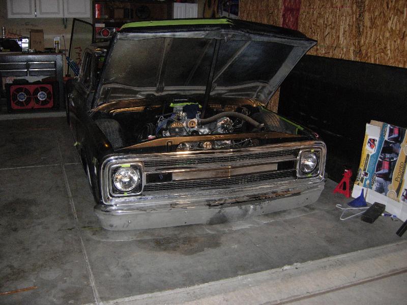 notice hood fits flush with fenders, soon to be switched w/ a 67' front clip