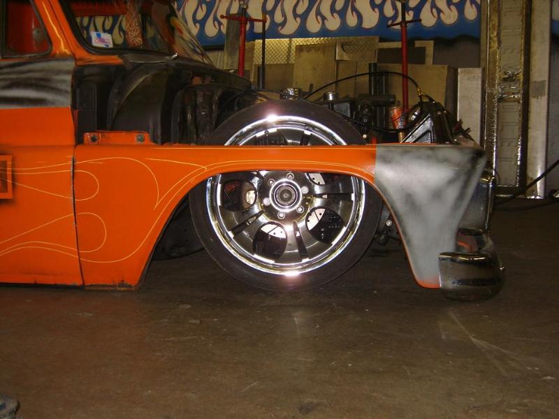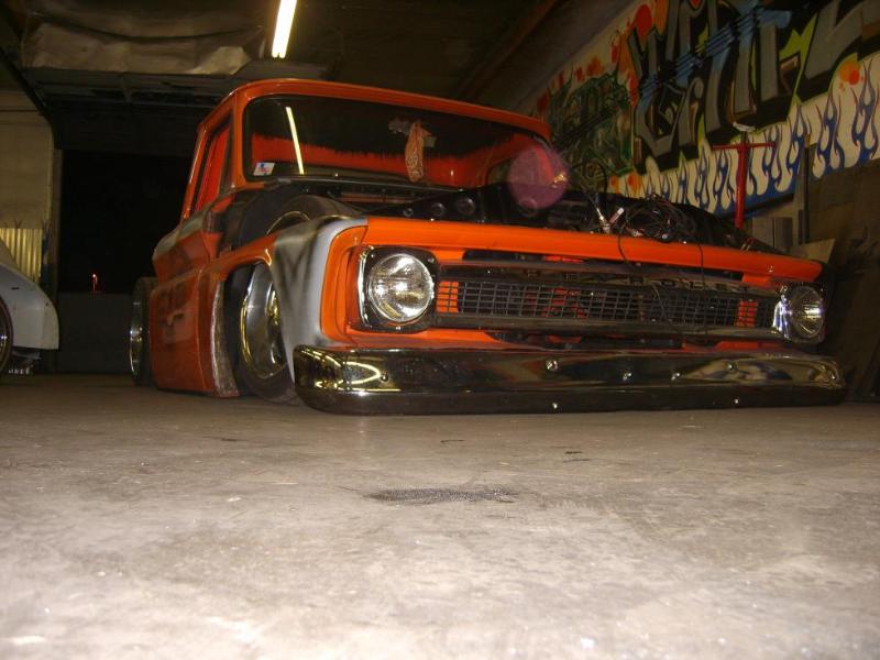 in the process of a 3 inch stock floor bodydrop,mostly primer right now, shaved door handles-gas door-cowl-antenna-mirrors, bondo and more primer