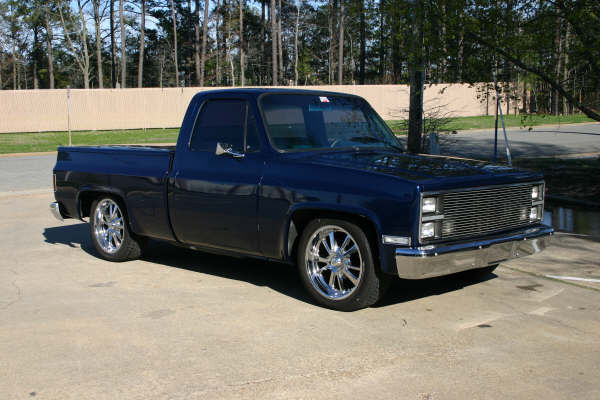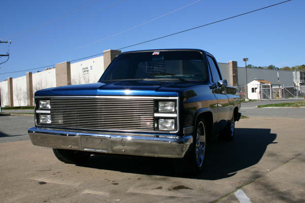 Shaved with Midnight Blue paint, tinted, chrome and smoothed front/rear bumpers, billet grill, SnugLid, Line X spray in bedliner