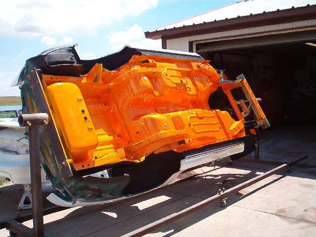 CHANGING EVERYTHING BODY IS COMPLETELY STRIPPED OF EVERYTHING AND IS ON A ROTISSERIE GETTING PREPPED FOR NEW PAINT