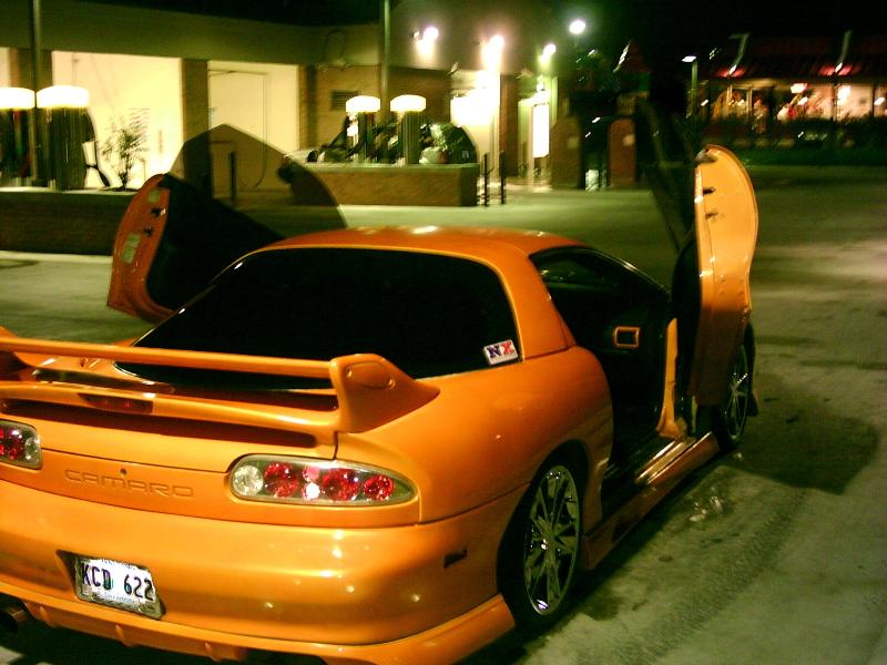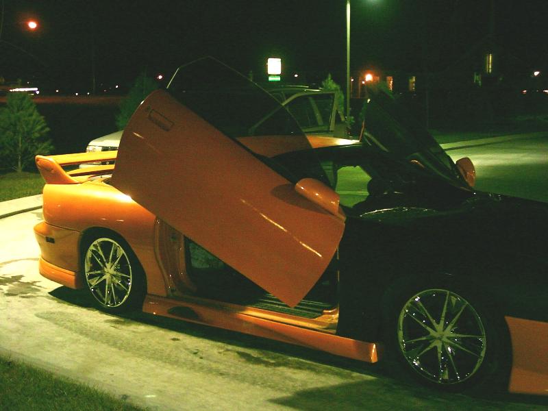 xennon front clip, vizage sides and rear shaved body line and antenna, carbonfiber ss hood , commando wing, black halo headlights, altessa tail lights, orange led light kit, custom diamond plate grille, custom billet blinker grilles, lambo doors