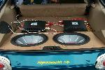 Two 15 inch MTX 6000's with two 1200 watt JBL amps. 4 pioneer 6 1/2''s. Crazy custom stuff by Jay coming in 03'