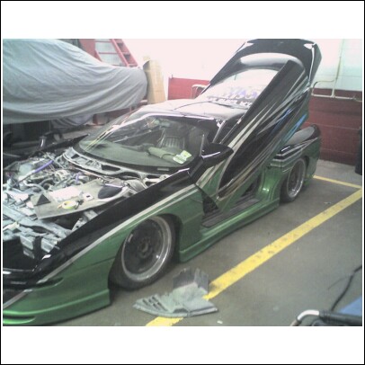 shaved doors, truck lock, nose emblem, antenna, gas door, gas filler relocated behind taillight, lambo doors, ss hood,molded ground effects, custom HOK paint thanks to Indy Speed and Custom