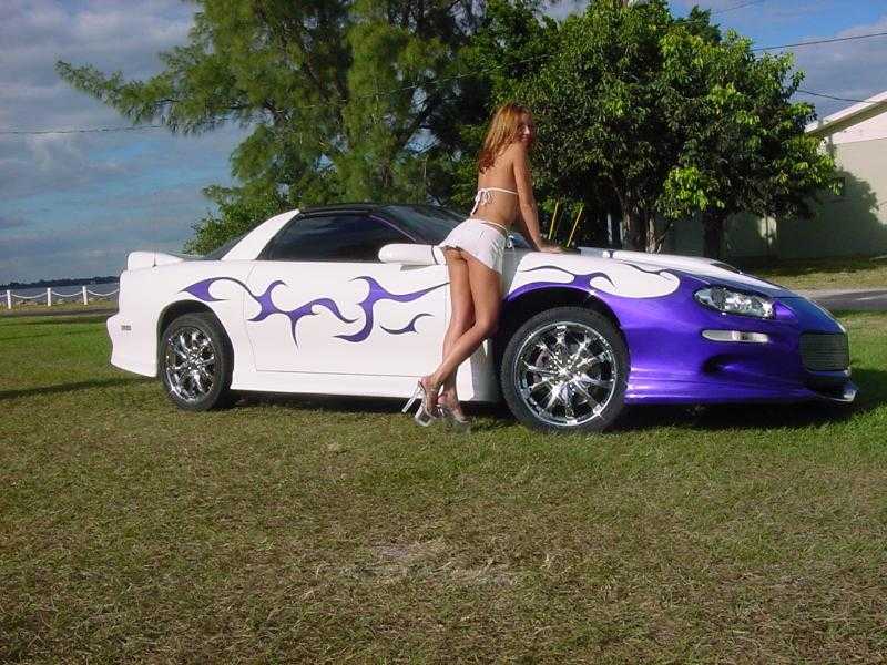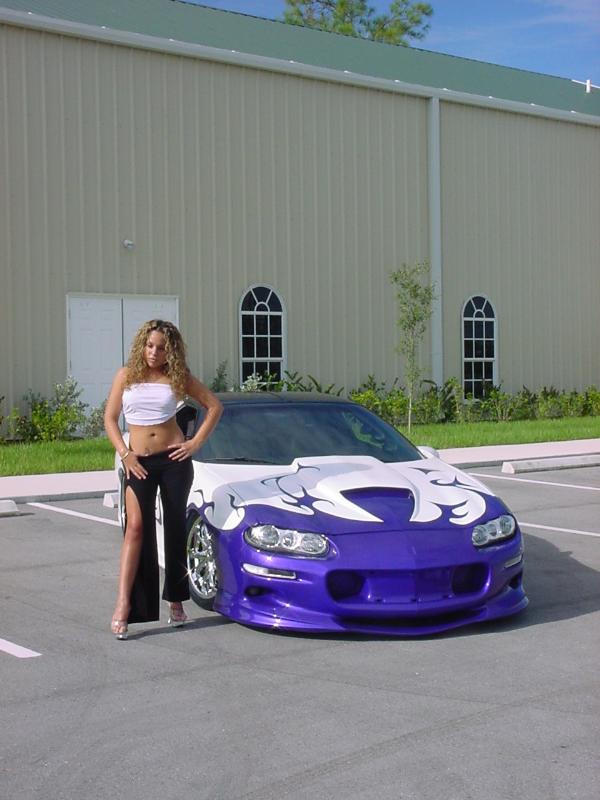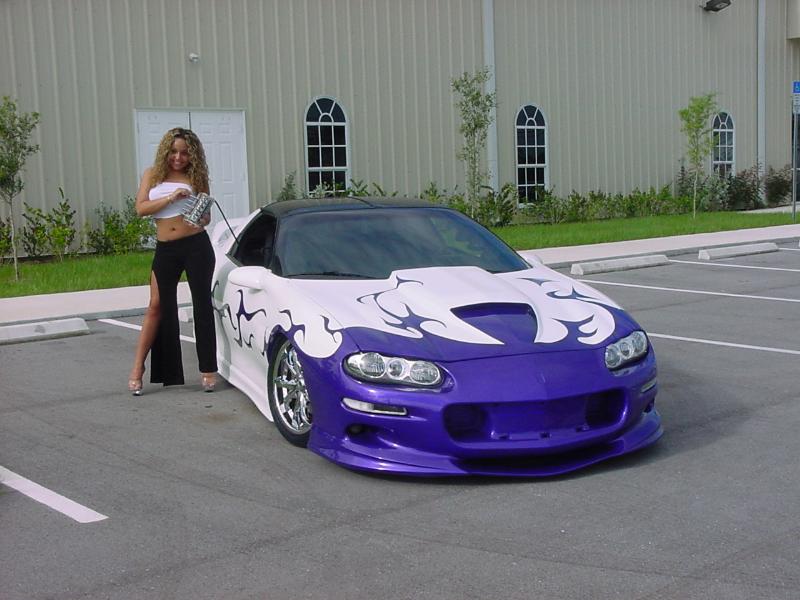 White with graphics, molded in ground effects, shaved door handles and key hole, shved body line, molded all body lines in, Erubuni front skirt, west wings grill insert, Underbody purple neons