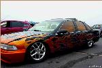 Completely custom tan tweed w/leopard flames and carpet/floormats. Orande tinted windows to match the flames.