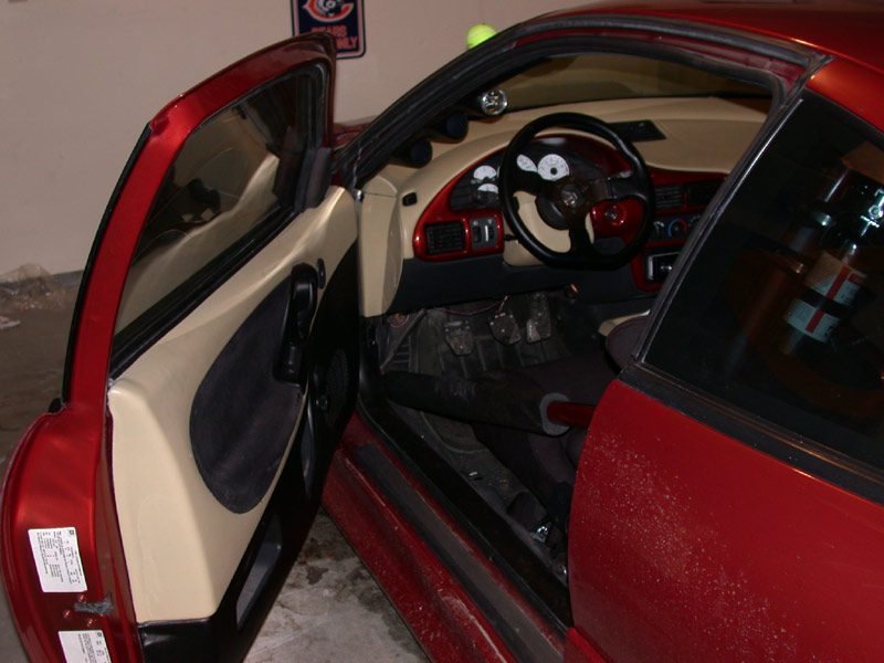 White guages, pedals, short shifter, redone in light tan (english leather look), Cobra Racing Seats, painted 8 point roll cage, Painted accents (all paint is matching orange metalic)