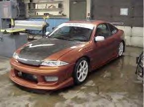 Full Drift kit w/ Matrix alluminum wing, carbon fiber hood, Prowler Orange paint, Z-3 fenders, clear side marker lenses, matrix euro tails, and shaved door handels.