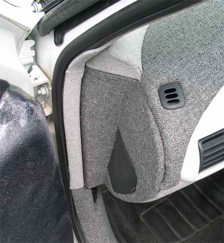 Full Tweed all the way around, Almost Finished Fiberglass door panels, Fiberglassed arm rests covered in tweed in the rear. Fiberglass deck lid for 6x9 speakers. Flashed in Trunk with w-7 sub and enclosure.