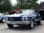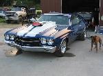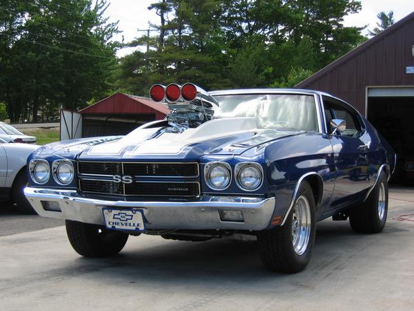 Painted electron blue, all new bumpers, chrome trim, stainless steel brakes lines, repainted frame, and underbody, 4" fibergalss cowl induction hood, custom emblems