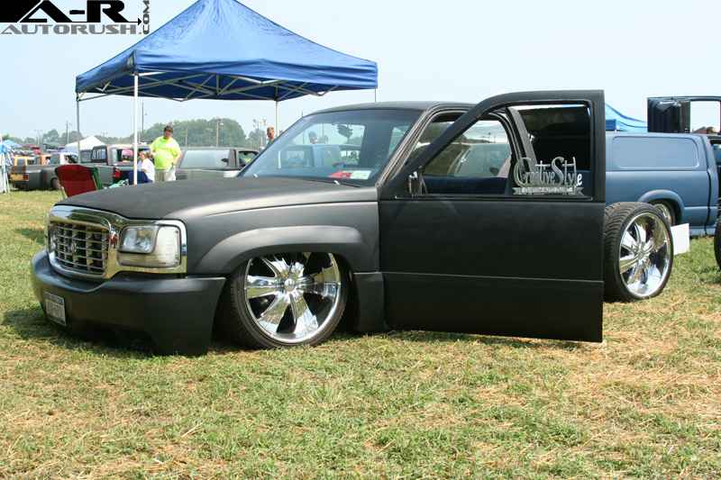 shaved doors ,antenna,mirrors,rain pockets,gas tank,brake lights,3rd brake light,tailgate molded shut.denali full front clip including doors and rear panels.custom hand made steel gas tank located under the bed.graffics in the door jambs sheetmetal bed
