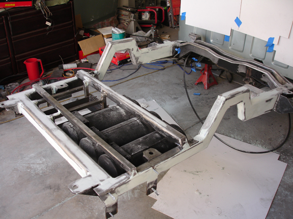 Full air suspension...lays body...smoothed and painted the frame and chromed all the individual pieces.