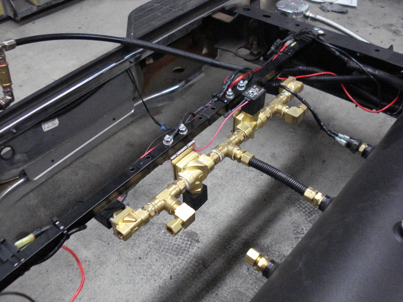 Ekstensive 2-link and cups,slam re-7s,4 1/2 smc,4 3/8 smc,duel viair 480s,8 gallon tank all mounted under the bed