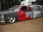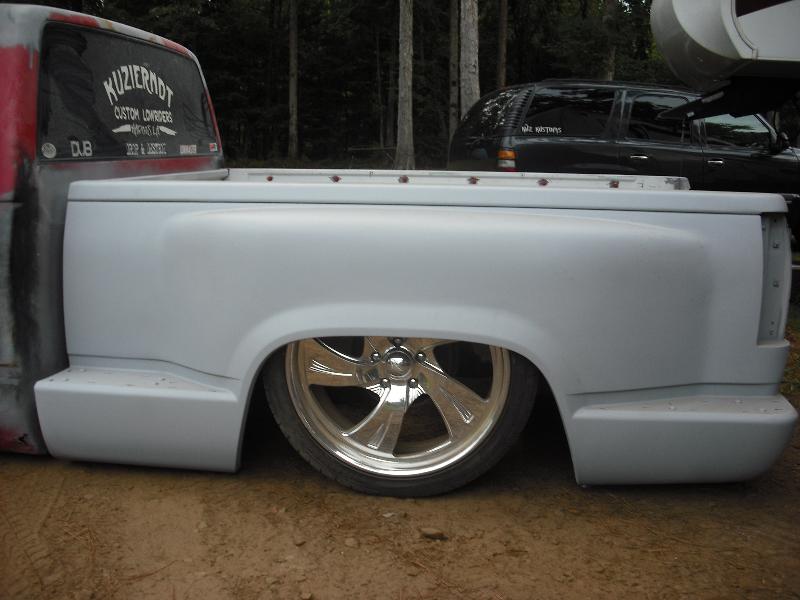 shaved doors, shaved third brake light, shaved gate and license box,phantom grill, clear corners and everything else still up front, raised the fenders for the 22s,shaved stake pockets, welded up the snaps where the old cover used to go, dropping the truck off for the fenders to be finished out as well as the remainder of the bedwork completed....http://www.rabsbodyshop.net/Default.aspx?tabid=641 Got the gas door shaved, the roll pan molded in and all the exterior bodywork done on the bed.....